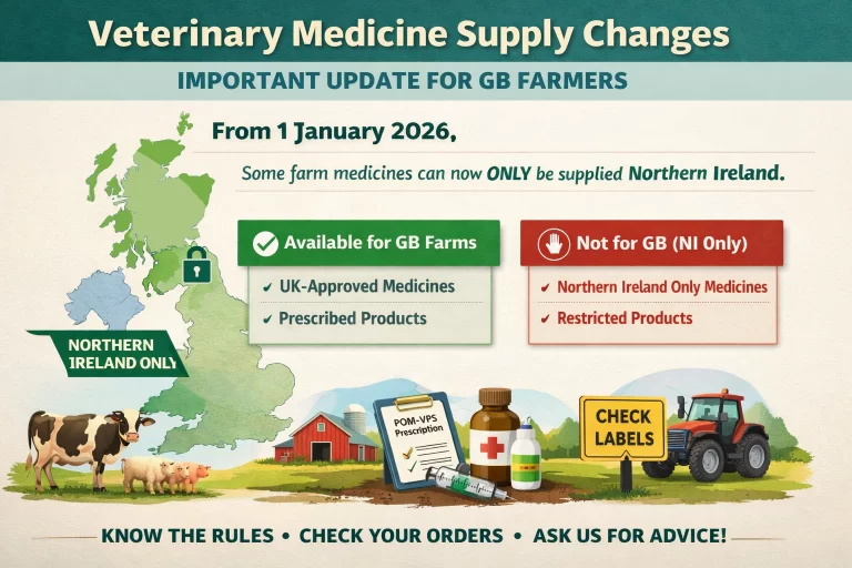 From 1 January 2026, new rules are now in place that affect how some farm animal medicines can be supplied from Northern Ireland to Great Britain (England, Scotland and Wales).